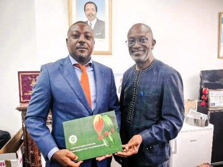(Business in Cameroon) – Omer Maledy, Executive Secretary of Cameroon’s Interprofessional Cocoa and Coffee Council (CICC), and Fabris Ekeu, General Manager of GS1 Cameroon, signed a memorandum of understanding (MoU) on Oct. 9, 2025, to enhance traceability in the country’s cocoa and coffee sectors. GS1 is the global standards organization behind barcodes.