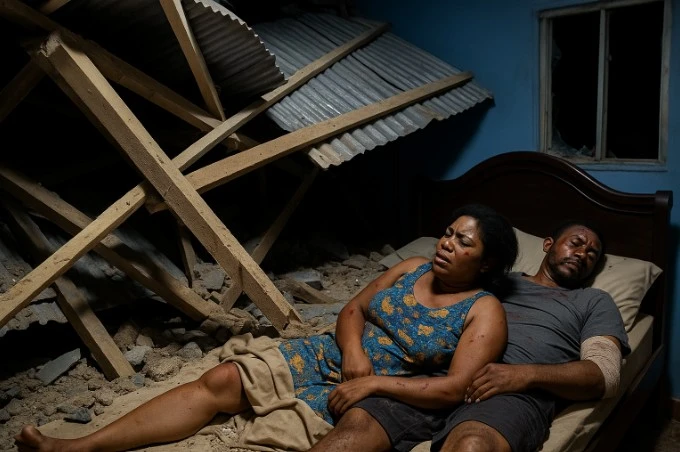 Couple adultère pris au piège d’un effondrement de charpente samedi 9 août 2025 au petit matin à PK14 près de Douala. Rose Mireille, 32 ans, et Léopold Martial, 39 ans, ont été retrouvés gravement blessés dans leur lit conjugal clandestin. Cette histoire rocambolesque révèle les dangers insoupçonnés des rencontres extramatrimoniales dans des habitations précaires. Un drame qui illustre parfaitement l’adage populaire camerounais sur les conséquences des relations illicites.