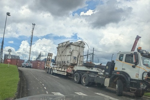 (Investir au Cameroun) – Ce 18 septembre 2024, le transformateur d’énergie électrique de 50 KVA de capacité, stocké depuis des mois à la base de la Société nationale de transport de l’électricité (Sonatrel) à Douala, en attendant d’être monté dans la zone industrielle de Douala-Bassa (les locaux devant abriter cet équipement sont en cours de construction, NDLR) pour stabiliser l’approvisionnement en électricité des entreprises, a été monté sur un camion-remorque (photo). De bonnes sources, cet équipement devrait incessamment quitter la capitale économique camerounaise, pour servir ailleurs dans le pays.