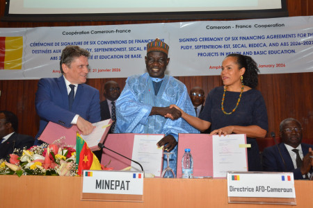 The agreements were signed by the Minister of the Economy, Planning and Regional Development, Alamine Ousman Mey, and the Country Director of the French Development Agency (AFD), Virginie Dago. The signing ceremony took place in the presence of the French Ambassador to Cameroon, Sylvain Riquier, alongside members of the Cameroonian government. The financing package combines loans and grants under ongoing bilateral cooperation frameworks between Cameroon and France.