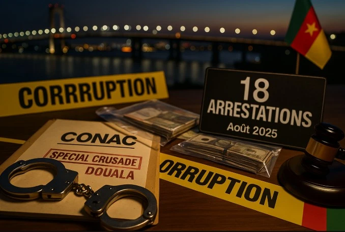 La CONAC fait 18 arrestations suite à une campagne anti-corruption d’une semaine menée dans la région du Littoral selon les révélations du Président Dr. Dieudonné Massi Gams. Cette opération d’envergure baptisée « Special Crusade » s’est achevée vendredi dernier à Douala avec des résultats spectaculaires contre diverses formes de corruption. Les enquêtes ont révélé des pratiques frauduleuses dans plusieurs secteurs incluant l’extorsion, les fraudes et les détournements de fonds. Une offensive sans précédent qui témoigne de la détermination gouvernementale à éradiquer ce fléau national.