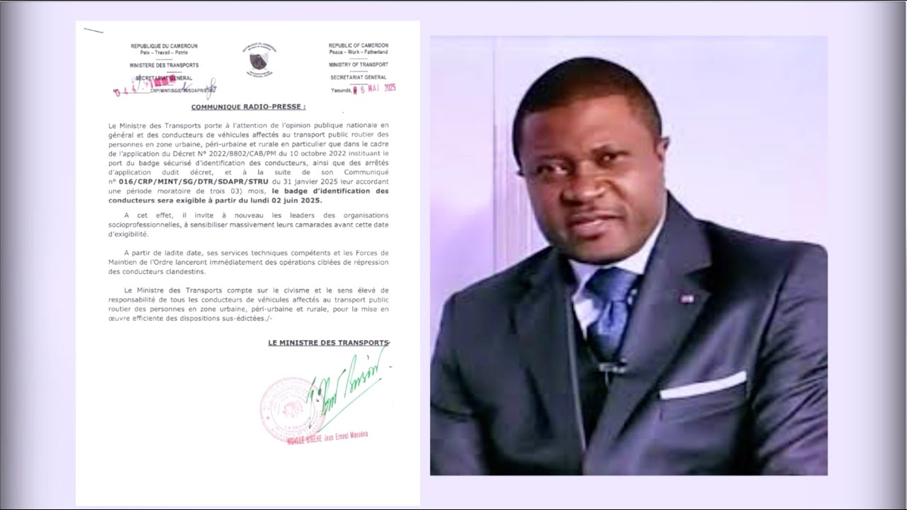 LES SERVICES DE TRANSPORT COLLECTIF AU CAMEROUN EXIGENT LES BADGES SÉCURISÉS D'IDENTIFICATION AUX…